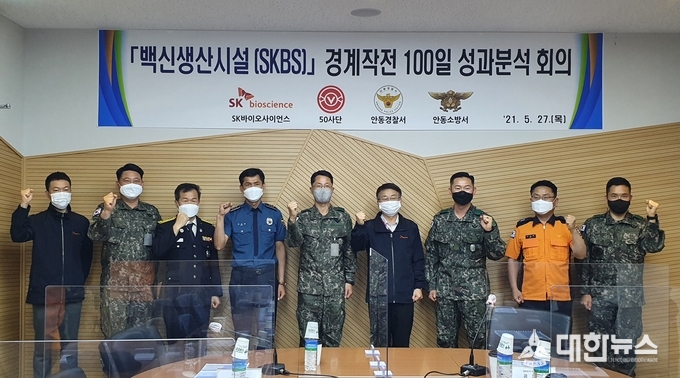 (대한뉴스김기준기자)=지난 27일, 육군 50사단이 국내 유일의 백신 생산시설인 안동 SK바이오사이언스(이하 SKBS) 경계작전 100일을 맞이하여 SKBS에서 시설관계자, 경찰 및 소방 관계관과 함께 성과분석 회의를 실시하고 코로나19 종식 시까지 완전작전 수행을 결의했다.