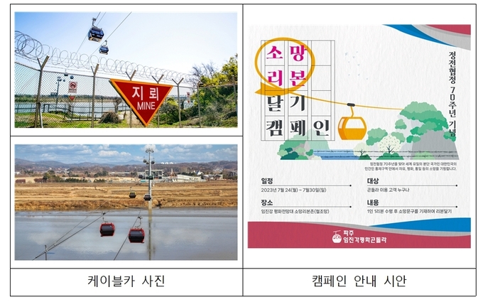 (대한뉴스 한원석 기자)=파주디엠지곤돌라(주) (대표이사 이백현)는 정전협정 70주년을 맞아 세계 유일의 분단 국가인 대한민국의 민간인 통제구역 안에서 자유, 평화, 통일 등의 소망을 기원하는 캠페인을 실시한다고 밝혔다.