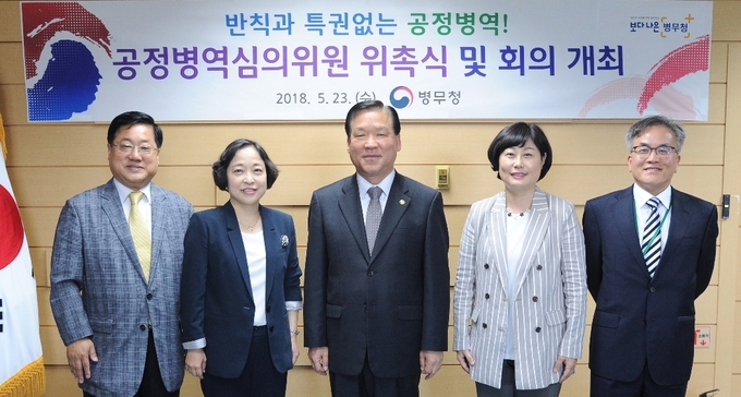 병무청(청장 기찬수)은 5월 23일 병무청 소회의실에서 공정병역심의위원회 위원에게 위촉장을 수여했다. 이날 공정병역심의위원회 위원을 위촉하고 위촉장을 수여하게 된 것은 법령 병역법 제77조의4, 병역법시행령 제155조의5 공정병역시의위원회의 구성 및 운영에 따른 병적관리를 위한 것이다.