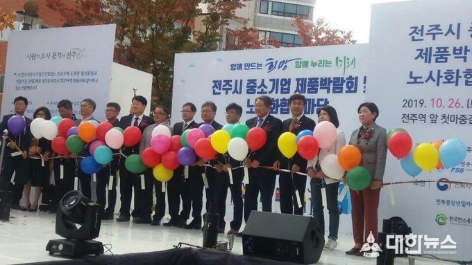 전주시와 (사)전주시중소기업인협회(회장 임동욱)는 26일 전주역 앞 첫마중길에서 ‘전주시 중소기업 제품박람회 및 노사화합한마당’을 개최했다.