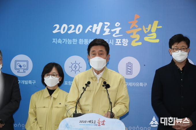 이강덕 포항시장은 20일, 지역 의료계와 함께 대시민 기자회견을 갖고 “대구에 주소를 두고 과외교사로 활동하며 현재 포항 북구 모 아파트에 일시 거주하고 있는 72년생 여자 환자가 현재 포항의료원 음압격리병동에 입원 중”이라고 밝혔다.