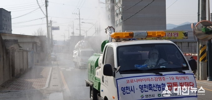 코로나19 방역은 크게 두 가지로, 보건소에서 실시하는 확진자 주거지역 및 이동경로의 실내·외 방역, 농업기술센터에서 방역차량을 이용해 실시하는 실내외 방역으로 영천시 전역의 다중이용시설, 공공주택 등의 방역이 이에 포함된다.