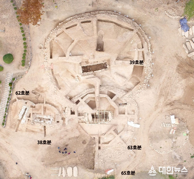 2019년 11월에 39호분의 봉토에 가려져 도굴되지 않은 63호분(봉토 지름 21m)의 매장주체부(시신 안치하는 곳)를 열었으며, 이후 올해 본격적으로 발굴조사를 진행해 매장 당시 피장자의 몸을 장식했던 금동관 등 꾸밈유물(着裝品, 착장품) 일체를 확인한 것이다.