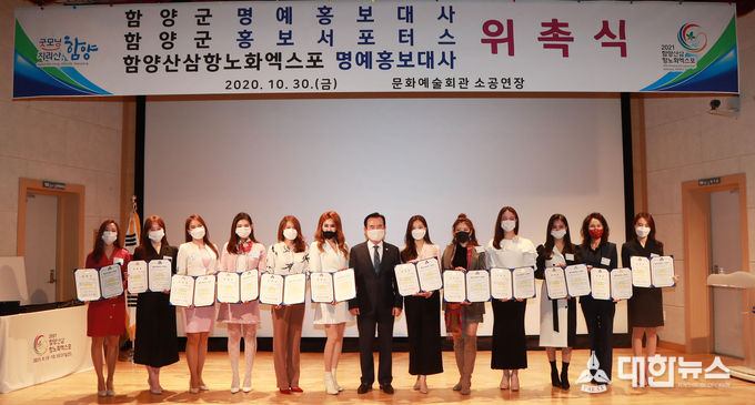 (대한뉴스김기준기자)=함양군(군수 서춘수)과 함양산삼항노화엑스포조직위(위원장 김경수)는 30일 오후 문화예술회관 소공연장에서 코리아한복모델협회(회장 서채린) 회원 21명과 명예홍보대사 및 홍보서포터즈 위촉식을 개최하였다.
