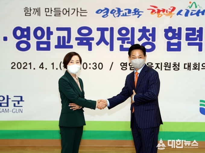 (대한뉴스 박청식기자)=영암군은 4월 1일(목) 영암교육지원청 대회의실에서 전동평 영암군수와 김성애 영암교육장 및 관계자들이 참석한 가운데 ‘미래인재 육성을 위한 교육협력 비전’을 공동발표하였다.