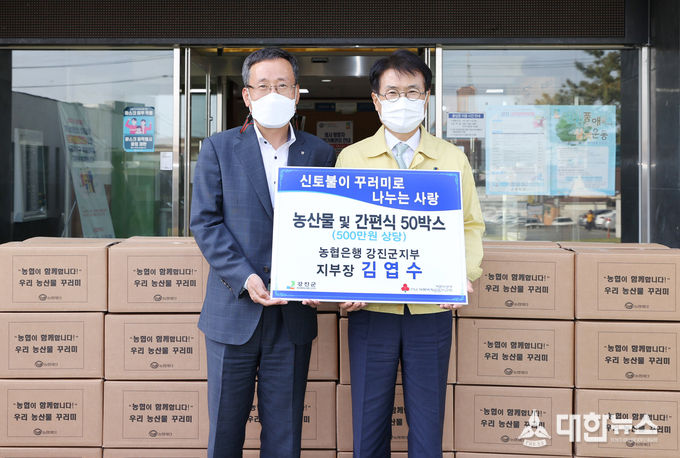 (대한뉴스 박청식기자)=농협중앙회 강진군지부는 지난 29일 어려운 이웃을 위해 써달라며 강진군에 농산물 및 간편식 꾸러미 50박스를 기부해 훈훈한 감동을 전했다.