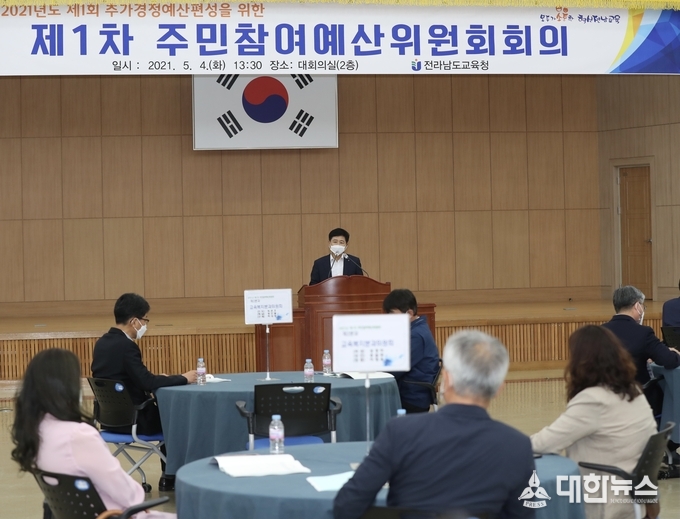 (대한뉴스 박청식기자)=전라남도교육청은 5월 4일(화) 청사 2층 대회의실에서 주민참여예산위원 30여 명이 참석한 가운데‘2021년 제1차 주민참여예산위원회’를 개최했다.