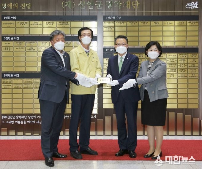 (대한뉴스 박청식기자)=광주은행 송종욱 은행장과 임원들은 4일 신안군청을 방문해 지역인재육성을 위해 사용해 달라며 1천만원의 장학기금을 전달했다.