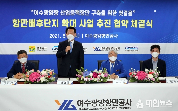 협약에 따라 여수광양항만공사는 광양만권경제자유구역청과 세풍산단개발(주)로부터 세풍산업단지 33만㎡를 인수해 전남도 소유부지 7만㎡를 포함, 총 41만㎡를 항만배후단지로 지정할 예정이다.