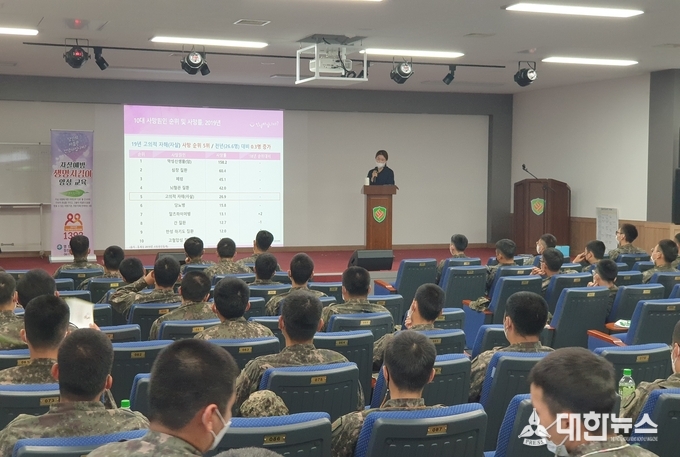 (대한뉴스 박청식기자)=영암군은 지난 5월 4일 육군 제8539-5부대군장병 70명을 대상으로 자살예방 및 생명존중문화 조성을 위해 자살예방 생명지킴이 양성교육을 실시하였다.