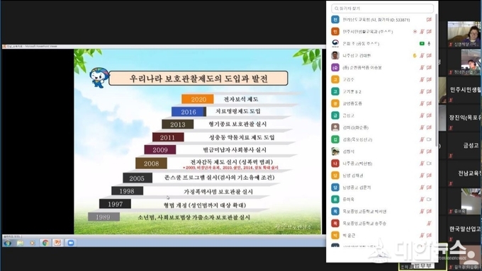 (대한뉴스 박청식기자)=전라남도교육청은 5월 7일(금) 교원 50명을 대상으로 2021. 보호관찰학생-교사 멘토링 실시간 온라인 화상교육을 실시했다.