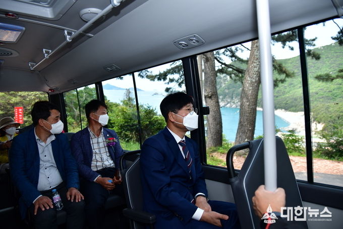 거제시는 10일 해금강 주차장에서 ‘남부면 마을버스 시승식’을 개최하고 운행을 시작했다고 밝혔다.