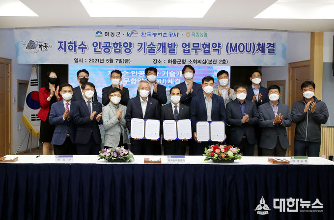 (대한뉴스김기준기자)=하동군이 물 부족으로 어려움을 겪는 시설농업지역의 안정적인 지하수 공급을 위해 한국농어촌공사(사장 김인식), 옥종농협(조합장 정명화)과 손을 잡았다.