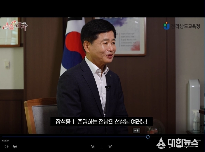(대한뉴스 박청식기자)=장석웅 전라남도교육감이 제40회 스승의 날을 이틀 앞둔 13일(목) 교육현장에서 코로나19 위기를 이겨내며 힘든 시간을 보내고 있는 전남 지역 교사들에게 감사의 메시지를 전했다.