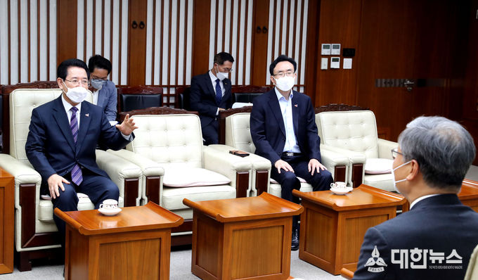 (대한뉴스 박청식기자)=김영록 전라남도지사가 윤의준 한국에너지공과대학교 총장과 개교 준비 사항을 공유하고, 지역 우수 학생 선발에 협조해줄 것을 강력히 요청했다.