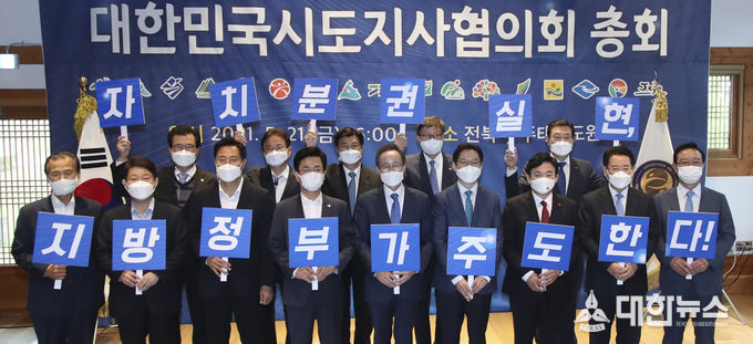 이날 총회에서 17개 시‧도지사는 코로나19 장기화에 따른 지역경제 어려움과 지방 재정수요 증가 문제를 개선하기 위한 ‘지방정부의 역할 강화 및 재정분권 추진을 위한 대한민국 시·도지사 공동성명서’를 채택하고, 10개 안건에 대해 토론했다.