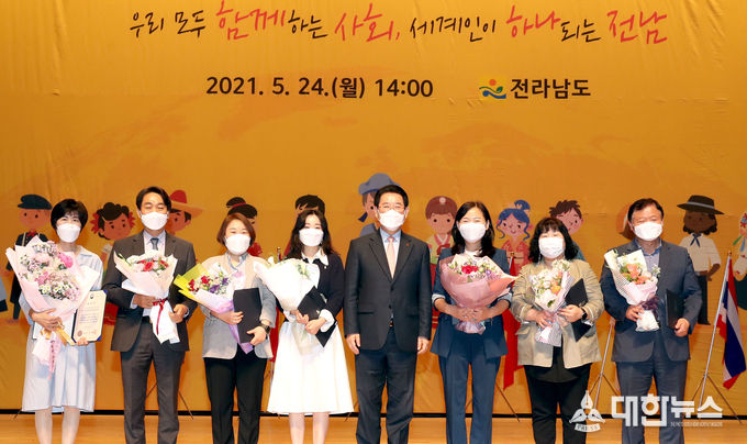 (대한뉴스 박청식기자)=전라남도는 24일 도청 김대중강당에서 외국인 주민 등 70여 명이 참석한 가운데 ‘2021년 세계인의 날 기념행사’를 열어 세계인이 하나 되는 전남 만들기에 함께 할 것을 다짐했다.