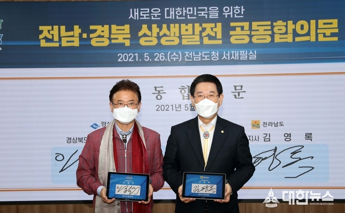 (대한뉴스 박청식기자)=전라남도와 경상북도가 과거 민주주의를 태동시키고, 경제발전의 기초를 닦은 두 축으로서, 미래 대한민국 제2 도약의 새로운 중심축 역할에 나서기로 했다.