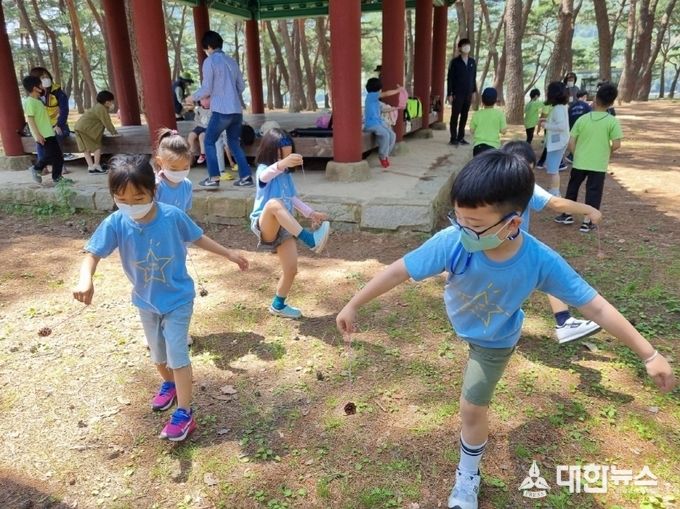 악양초 아이들과 선생님들은 코로나19로 지친 몸과 마음을 치유하기 위해 송림과 섬진강을 찾았다.