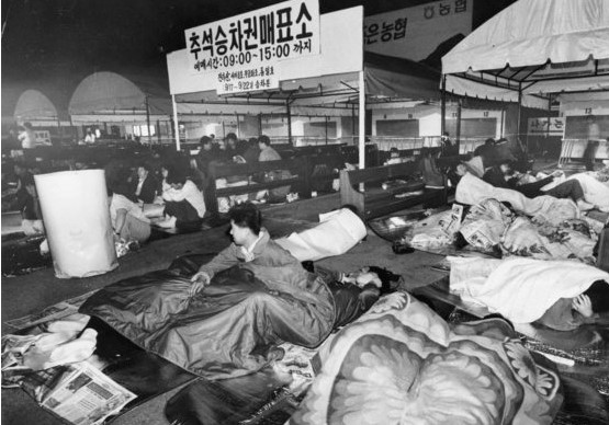 1970년 고향가는 표를 구하기위해 서울역에서 밤을 새웠으며 고속도로는 주차장을 방불케했다.