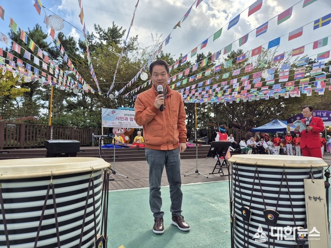 ▲전문환 송도해상케이블카 대표이사가 축사 하고 있다