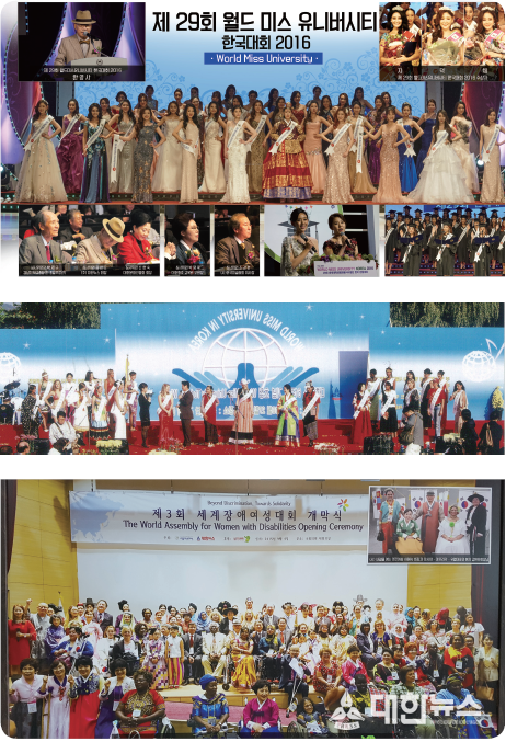 2015년 제3회 세계장애여성대회 공동주최, 제19, 21회 월드미스유니버스티 세계대회 주관, 제22, 29회 월드미스유니버시티 한국대회 주관, 84회 어린이날 행사 주관, ‘생활체육 카네이션 전국 어머니 배구대회’ 주관, 6.25전쟁 60주년기념 ‘은혜를 잊지않는 대한민국’ 리틀엔젤스 UN참전 16개국과 물자지원 6개국 순회공연 후원, 대한뉴스 선진포럼 개최, 참 좋은 천사들 지체장애아 성인식 개최, 봄 쭈꾸미 축제, 가을 전어 축제 등. 그 외 각국 대사들에게 제일 좋은 천으로 한복을 만들어 선물하는 등 대한뉴스 가족은 우리 문화를 지킨다고 자부하고 있으며, 누가 보던 보지 않든 사회에서 솔선수범하고, 독자와 광고주 여러분의 고마운 은혜를 잊지 않을 것입니다. 감사합니다.