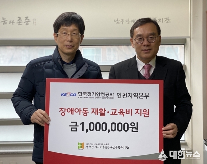 한국전기안전공사 인천지역본부(본부장 손명목)는 12월 26일(목), 인천광역시 미추홀장애인종합복지관(관장 조민호)에 후원금 100만원을 전달했다. 전달된 후원금은 경제적인 어려움으로 재활치료를 받지 못하는 장애아동 2명의 치료비로 사용된다.