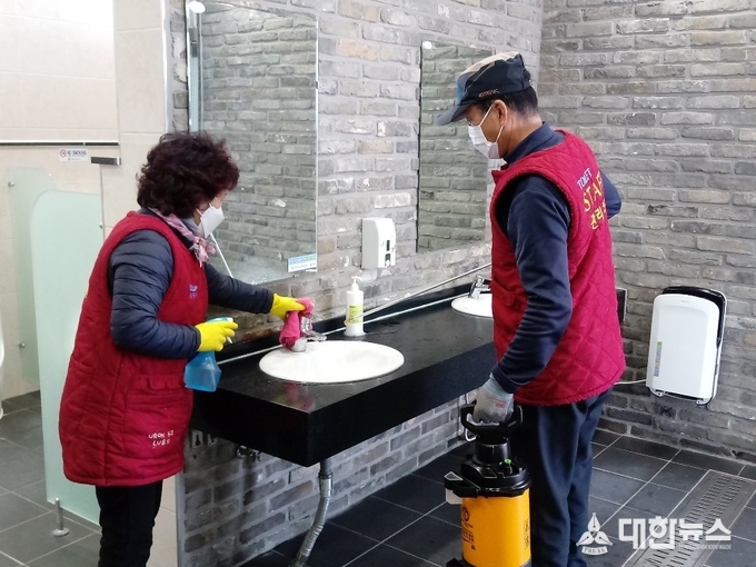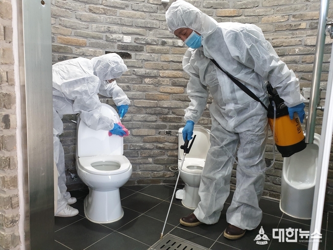 (대한뉴스 김기호 기자)=강릉시 환경과에서는 코로나19 바이러스 감염 예방을 위하여 관내 공중화장실 131개소에 손소독제·세정제 비치 및 매일 소독을 실시하고 있으며,
