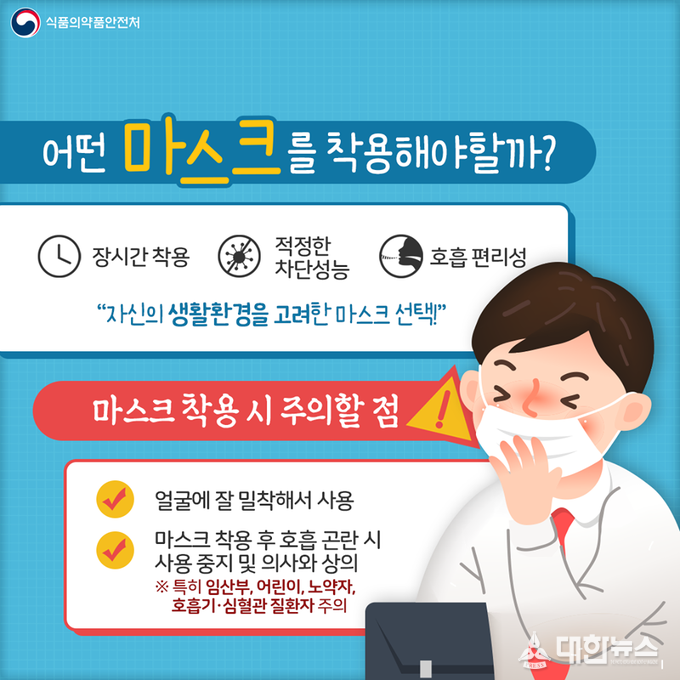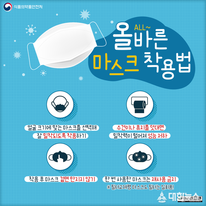 (대한뉴스 김기호 기자)침방울과 콧물 등 호흡기 분비물을 통해 전파되는 코로나19의 특성상 감염 예방을 위해서는 일상생활에서의 마스크 착용이 중요한 가운데, 최근 인터넷과 SNS 등을 통해 잘못된 정보들이 범람함에 따라 원주시 보건소가 올바른 마스크 선택 및 사용법에 대한 홍보에 나섰다.