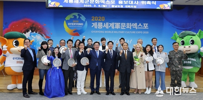 (대한뉴스 박청식 기자)=계룡세계군문화엑스포 조직위원회는 9일 도청 대회의실에서 양승조 충남도지사와 최홍묵 계룡시장, 김진호 민간위원장 등 20여명이 참석한 가운데 계룡세계군문화엑스포 홍보대사 위촉식을 개최했다.
