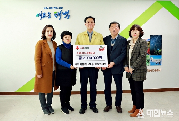 (대한뉴스 김기호 기자)=문곡소도동 통장협의회(회장 임병수)가 13일(금) 태백시에 코로나19 극복 성금 2백만 원을 기탁했다.