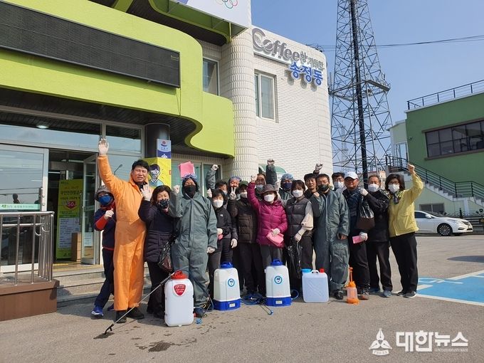 송정동 통장협의회(회장 최규호)는 코로나19 감염 예방을 위해 소규모 공동주택 6개소, 공동화장실 5개소, 관내교회 3개소, 체육시설3개소, 버스승강장 10개소에 대한 방역을 실시하였다.