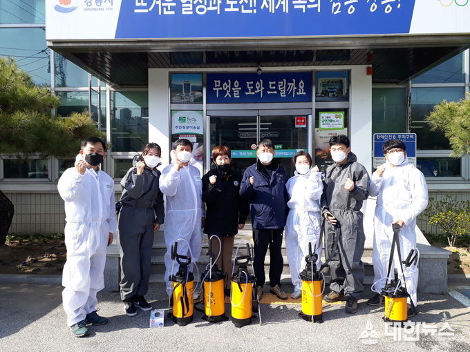 (대한뉴스 김기호 기자)=강릉시 연곡면 지역사회보장협의체(위원장 이정숙)에서는 자율방역단(11명)을 구성하여, 18일(수) 연곡면 관내 주요 방역구역(소형연립, 공중화장실, 승강장 등 다중이용시설)을 대상으로 자율방역 활동을 실시했다.