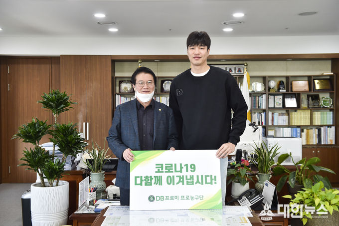 (대한뉴스 김기호 기자)=원주 DB프로미 프로농구단(단장 신해용) 김종규 선수가 3월 20일 코로나19 극복을 위한 후원금 3천만 원을 연고지인 원주시(시장 원창묵)에 전달했다.