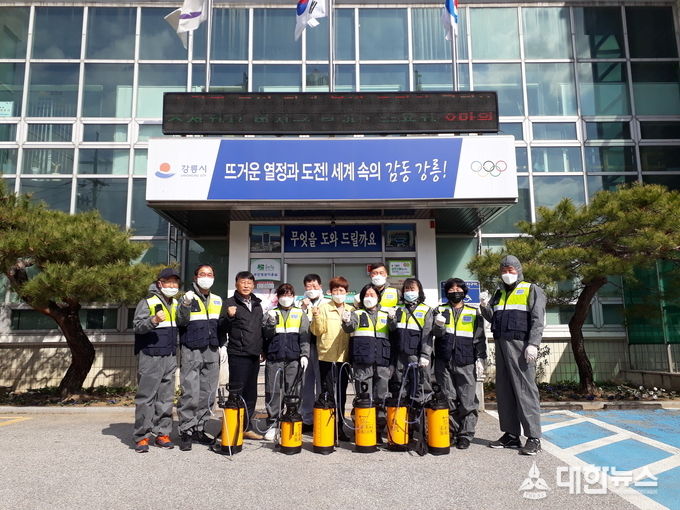 경포동 경포의용소방대 20여 명은 22일 13:00에 경포해변 중앙통로, 경포 인근상가 등을 중심으로 방역활동을 하였다.
