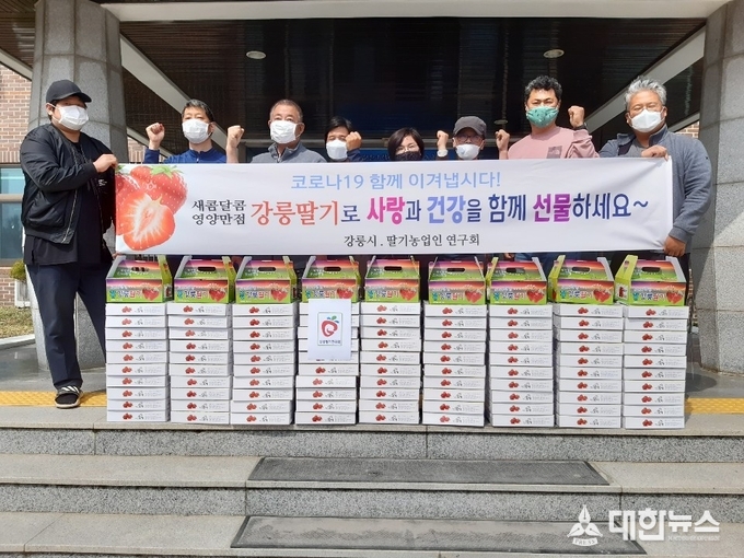 (대한뉴스 김기호 기자)=강릉딸기연구회(회장 김규식)는 31일 코로나19 확산방지를 위해 최일선에서 노력하고 있는 강릉시 보건소를 비롯한 선별진료소, 마스크 필터작업장 등 5곳에 위문품을 전달했다.