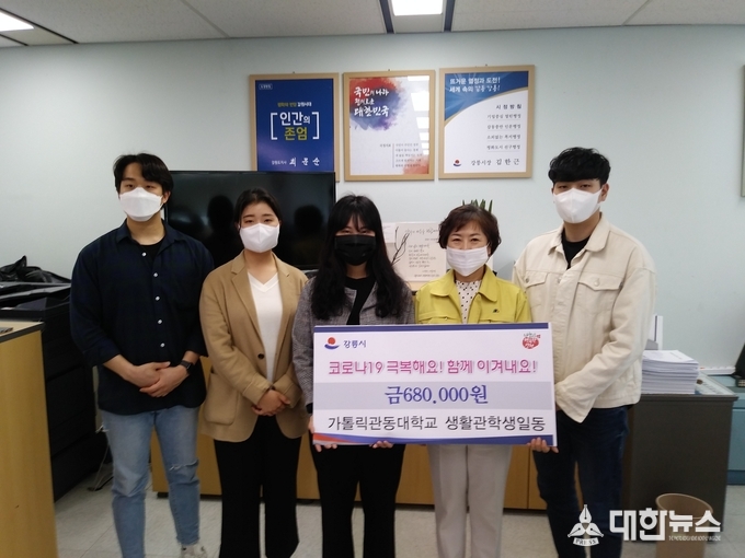 또한 가톨릭관동대학교 생활관학생들이 수공예품을 제작 판매한 수익금 68만원을 코로나19 극복에 써달라며 강릉시에 기탁했다.