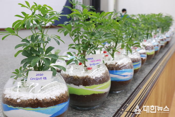 이렇게 대학생봉사단의 손길로 만들어진 원예화분은 코로나19 대응을 위해 현장에서 근무하는 일선 관계자와 감염취약계층에게 전달되었다.