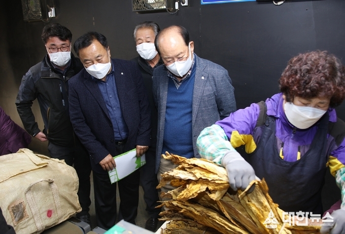 (대한뉴스김기준기자)=류한우 단양군수는 지난 10일 잎담배 수매가 진행되고 있는 제천시 봉양읍 소재 제천엽연초생산협동조합을 방문해 현장을 둘러보고 관계자들을 격려했다.