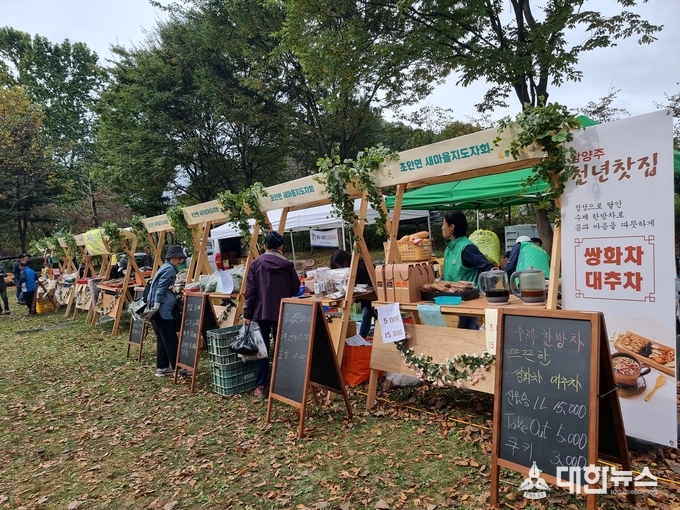 (대한뉴스 이경화 기자)= 남양주시 조안면에 있는 다산생태공원에서 10월 18~19일 이틀간다산 정약용문화제와 함께 여유농 장터와 먹거리 장터가 풍성하게 열렸다. 장터에는 지역 농업인이 직접 참여하여 행사장을 찾은 시민들에게 신선한 남양주산 농특산물을 소개하며 축제의 풍성함을 더했다. 한편, 다산생태공원은 2012년 한강살리기 사업의 목적으로 훼손된 팔당호 수변 지역을 조성하면서 오늘날 생태·역사·문화가 어우러진 친환경적인 공원으로 탈바꿈했다. 사계절 내내 여유롭게 산책할 수 있어 시민들이 즐겨 찾는 휴식 공간이다.