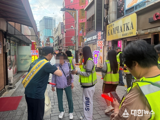 (대한뉴스 김기준 기자)=) 부산동부경찰서(서장 김경수)는 지난 10월 17일(금)부터 19일(일)까지 3일간 부산역 광장 및 텍사스거리 일대에서 외국인 유동인구 증가에 따른 범죄예방과 지역주민의 불안을 해소하기 위한 『안전한 우리 동네 만들기』 합동 캠페인을 성공적으로 전개했다.
