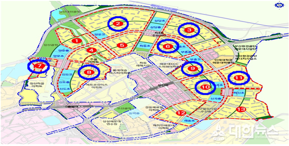 (대한뉴스 윤병하 기자)=부산시(시장 박형준)는 지난주 노후계획도시정비 기본계획(안)에 따른 특별정비예정구역 1단계(화명·금곡, 해운대1·2) 선도지구 선정 공모 접수 결과, 해당 지역 총 27개 구역 중 14개 구역 3만 2천 호가 신청서를 제출했다고 밝혔다.