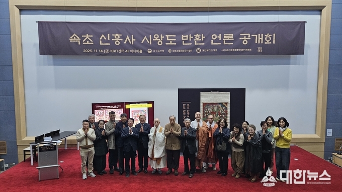 (대한뉴스 김기호 기자)=머나먼 이국땅에서 오랜 세월을 지내온 속초 신흥사 시왕도 한 점이 마침내 지난 14일, 본래 있던 신흥사로 돌아왔다.