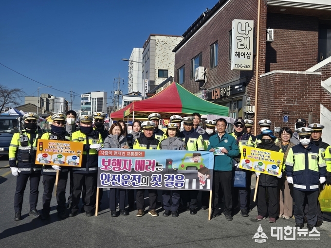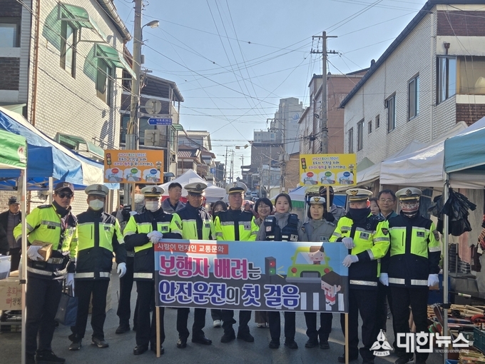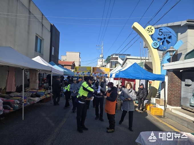 (대한뉴스 김기준 기자)=제천경찰서(서장 김태경)는 18일 모범운전자 제천지회(회장 최지원), 제천시 교통과, 시민안전과 등 20명이 함께 제천역전시장 오일장을 찾아 ‘장날 교통안전 합동 캠페인’을 실시했다.
