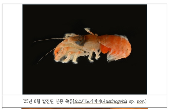(대한뉴스 한원석 기자)=기후에너지환경부 소속 국립생물자원관(관장 유호)은 제주 서귀포 연안에서 전 세계적으로 처음 확인된 신종 쏙류 1종과 국내에서 서식이 처음 확인된 미기록 게붙이류 1종을 발견했다고 밝혔다.