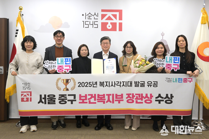 (대한뉴스 김기준 기자)=서울 중구(구청장 김길성)가 보건복지부 주관 ‘2025년 사회보장정보시스템 구축 및 운영평가’에서 ‘복지사각지대 발굴 분야’ 우수기관으로 선정돼 보건복지부 장관상을 수상했다.
