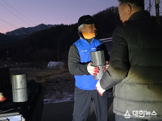 (사)이웃은 지난 11일 오전 7시, 홍천군 남면 시동로 일대에서 회원 20여 명이 참여한 가운데 난방 취약 가정을 대상으로 연탄 500장을 직접 전달했다.