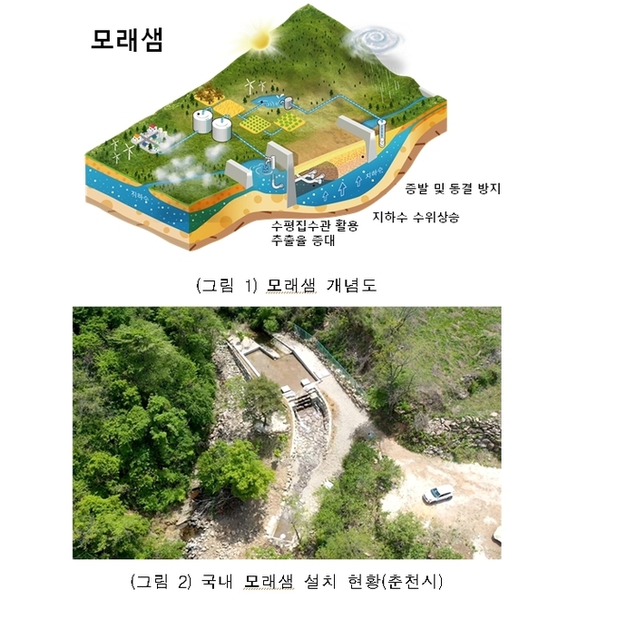 ‘워터 포지티브’ 사업의 일환으로 추진되는 이번 조성사업은 강원도 화천군 소재의 경계초소(GOP) 인근에 모래샘을 설치하여 가뭄 등 기후위기에도 대체수원으로 용수를 확보하여 지속 가능한 용수공급 체계를 구축한다.