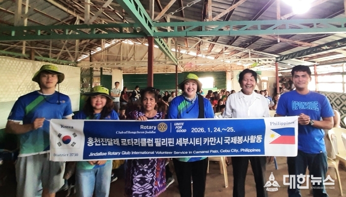 (대한뉴스 한원석 기자)=강원 국제로타리 3730지구 홍천 진달래로타리클럽(회장 강미영)은 지난 23일부터 26일까지 2박 4일간 필리핀 세부 라프라프시티 수상가옥 빈민촌에서 250만원의 물품구입 및 자재비로 전기시설 보수작업, 맞춤형 생필품과 식료품 전달 및 수상가옥 배달, 노래·율동 어울림마당, 학생들 간식 및 학용품 전달 등 현지방문 첫 국제봉사활동을 펼쳤다고 밝혔다.