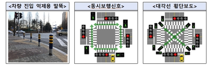 차량 진입 억제 말뚝‧대각선 횡단보도 확대 등 횡단보도 보행 안전 강화